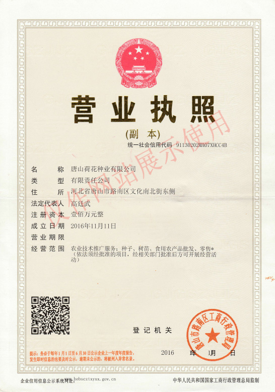 唐山荷花種業有限公司始創于1984年,一直秉承“科技為先,誠信為本”的發展指導戰略,注冊商標“荷花”牌,經過三十多年的發展,建立了從親本選育、試驗示范、生產檢驗、精選加工、推廣銷售及農業技術咨詢一體化的經營體系,目前擁有試驗基地、繁育基地、制種基地、及規模化種子冷貯藏庫,完善了由科研、檢驗、生產、銷售各個配套環節。荷花牌系列種子正是我們在堅持“誠信、品質、開拓、創新”的企業精神下打造的種子品牌,如今,在全國已形成強勢品牌效應,是一個值得信賴具有一定影響力的種子品牌,在全國廣大用戶中贏得了良好的口碑和信譽... ...
